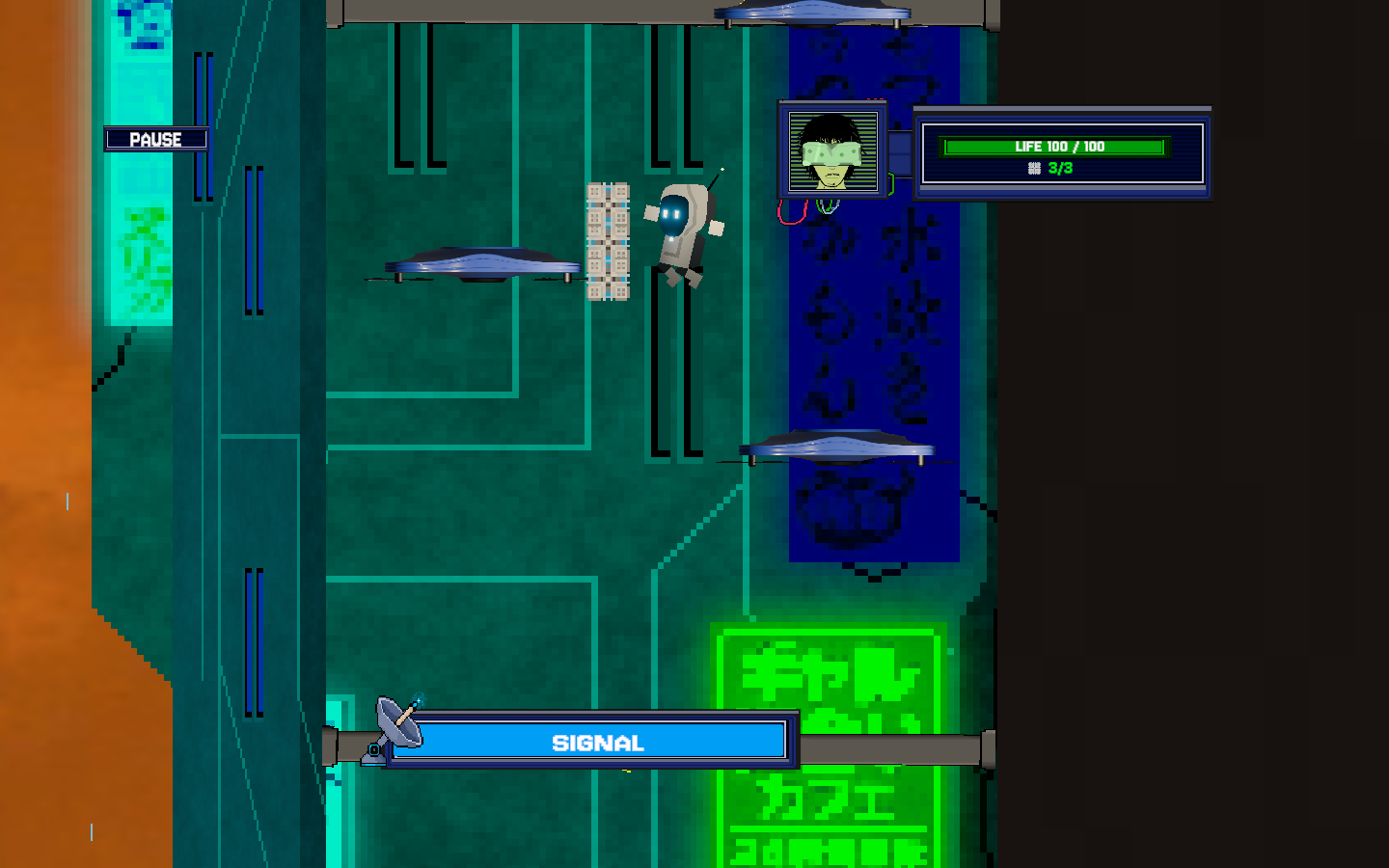 Signal Path é um jogo de plataforma 2D com elementos de parkour e uma estética única misturando arte vetorial com pixel art. Você controla um pequeno robô que precisa coletar três caixas espalhadas pelo mapa, mas cada caixa coletada torna sua movimentação mais pesada, dificultando saltos e corridas.